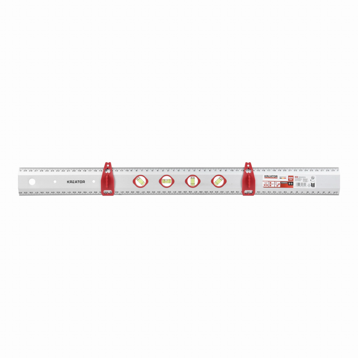 Rozlučte se s křivými nástěnnými skříňkami nebo obrazovými rámy s tímto pravítkem / vodováhou KRTH70301 z naší řady Kreator o délce 600 mm. Toto pravítko lze také použít jako vodováhu. Pomocí dvou posuvných značek si můžete vyznačit přesné vzdálenosti. Čtyři vodováhy vám umožní vyrovnat cokoli, ať už vodorovně, svisle nebo pod úhlem 45st. Navíc má integrované závěsné oko pro snadné skladování.