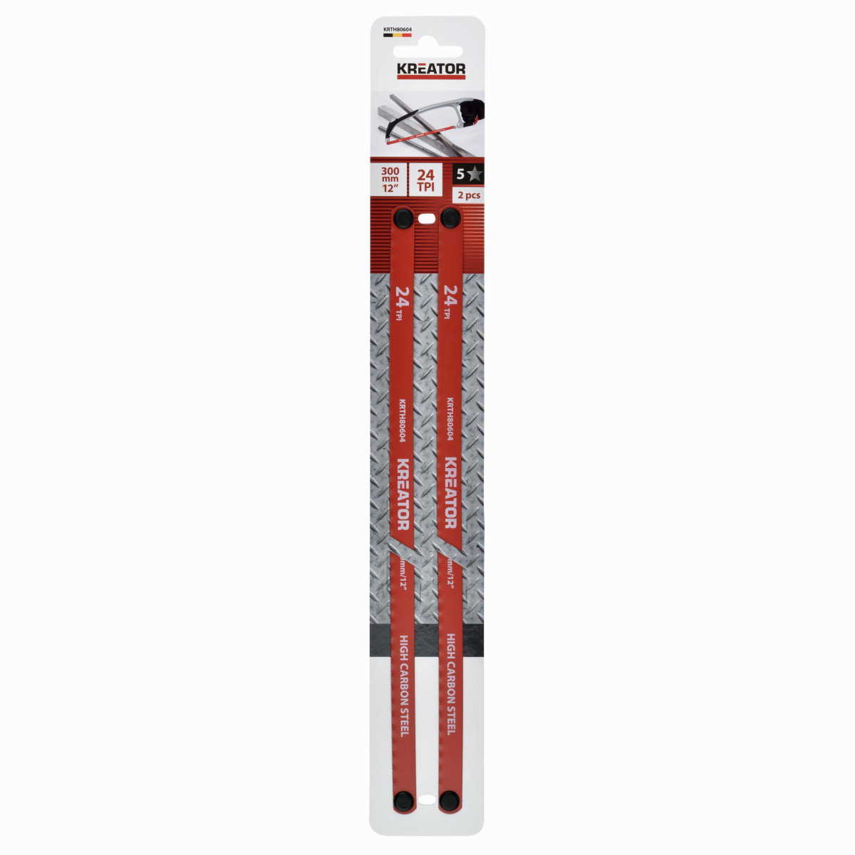 Potřebuje vyměnit pilový plátek na vaší pile? Tyto 2 pilové plátky KRTH80604 od Kreator pasují na pily, které používají plátky o délce 300 mm. Jsou vyrobeny z materiálu HIGH CARBON STEEL, mají 24 zubů na palec (TPI) a jsou ideální pro řezání PVC, hliníku a dalších kovů.