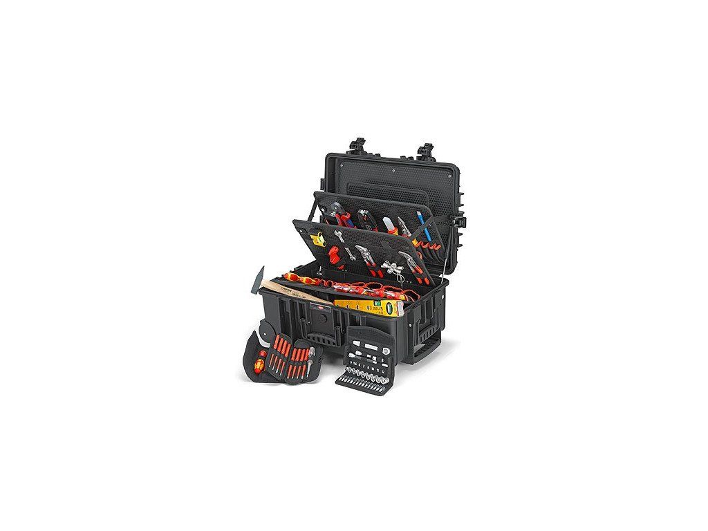 Kufr vhodný pro leteckou přepravu, z odolného polypropylénu Prachotěsný a vodotěsný Automatický ventil pro vyrovnání tlaku Odolný vůči teplotám od - 30 °C do +80 °C Zařízení pro visací zámek Přihrádka na dokumenty; tabule s nářadím s 54 plnitelnými kapsami na nářadí a 94 poutky na nářadí Uzamykatelné dno individuálně dělitelné systémem hliníkových přepážek Ergonomická dvousložková rukojeť Se dvěmi lehkoběžnými kladkami S teleskopickým držadlem Objem: 45 l Zatížitelnost do 35 kgDoplňkové parametry