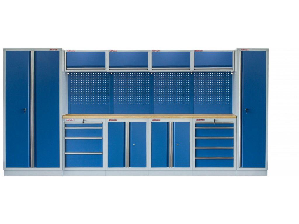 Sestava nábytku v sobě skrývá dostatečné množství úložného prostoru pro vaše nářadí, autotechniku i dílenské vybavení. V kombinaci s bytelnou pracovní deskou získáte multifunkční stěnu, se kterou vám půjde práce od ruky ve všech směrech.