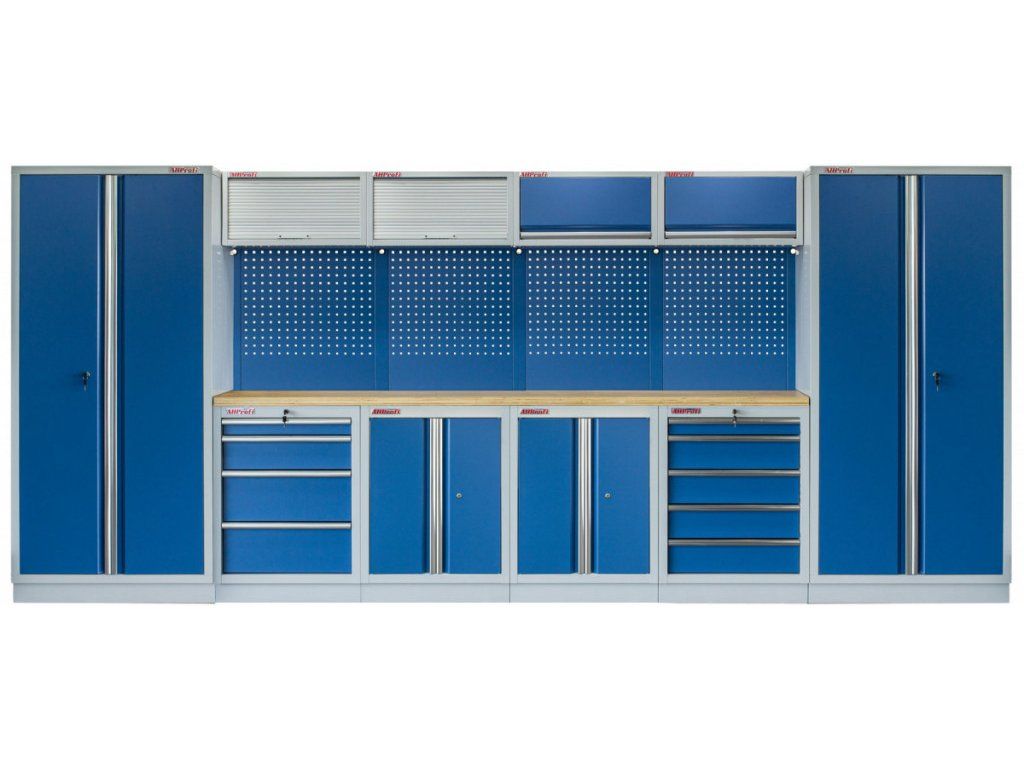 Sestava nábytku v sobě skrývá dostatečné množství úložného prostoru pro vaše nářadí, autotechniku i dílenské vybavení. V kombinaci s bytelnou pracovní deskou získáte multifunkční stěnu, se kterou vám půjde práce od ruky ve všech směrech.