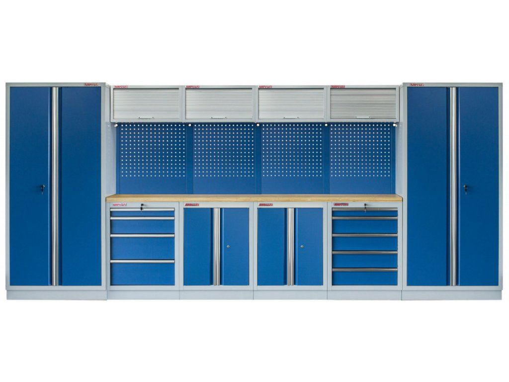 Sestava nábytku v sobě skrývá dostatečné množství úložného prostoru pro vaše nářadí, autotechniku i dílenské vybavení. V kombinaci s bytelnou pracovní deskou získáte multifunkční stěnu, se kterou vám půjde práce od ruky ve všech směrech.