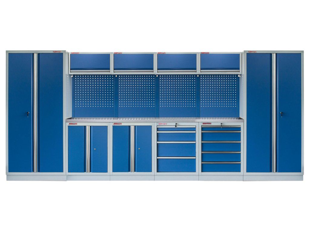 Sestava nábytku v sobě skrývá dostatečné množství úložného prostoru pro vaše nářadí, autotechniku i dílenské vybavení. V kombinaci s bytelnou pracovní deskou získáte multifunkční stěnu, se kterou vám půjde práce od ruky ve všech směrech.