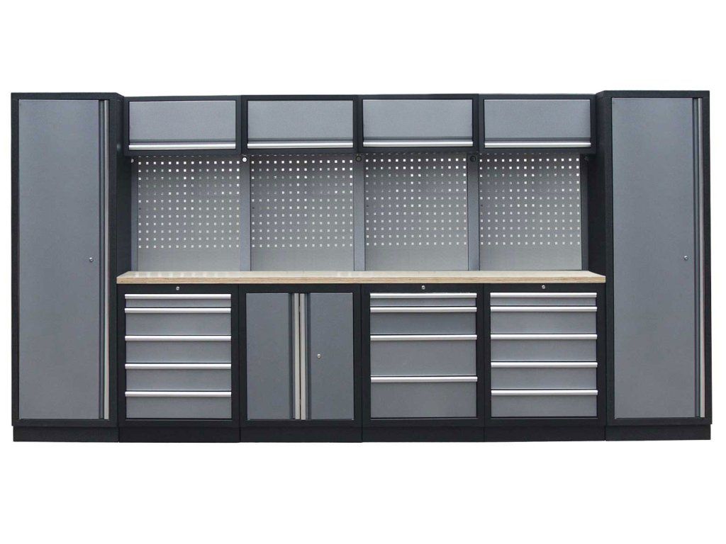 Sestava nábytku v sobě skrývá dostatečné množství úložného prostoru pro vaše nářadí, autotechniku i dílenské vybavení. V kombinaci s bytelnou pracovní deskou získáte multifunkční stěnu, se kterou vám půjde práce od ruky ve všech směrech.