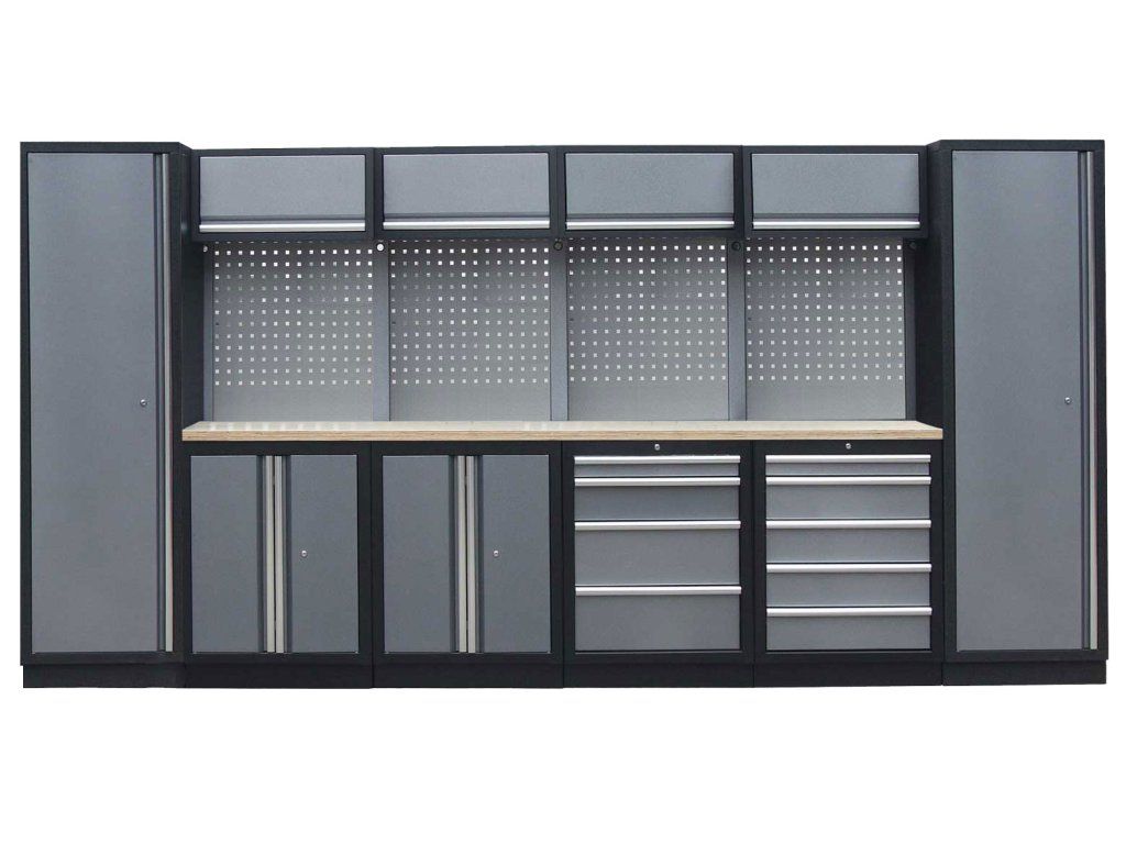 Sestava nábytku v sobě skrývá dostatečné množství úložného prostoru pro vaše nářadí, autotechniku i dílenské vybavení. V kombinaci s bytelnou pracovní deskou získáte multifunkční stěnu, se kterou vám půjde práce od ruky ve všech směrech.