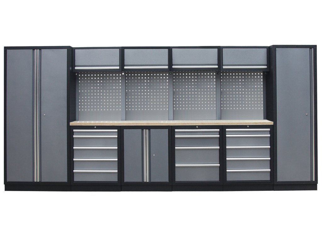 Sestava nábytku v sobě skrývá dostatečné množství úložného prostoru pro vaše nářadí, autotechniku i dílenské vybavení. V kombinaci s bytelnou pracovní deskou získáte multifunkční stěnu, se kterou vám půjde práce od ruky ve všech směrech.