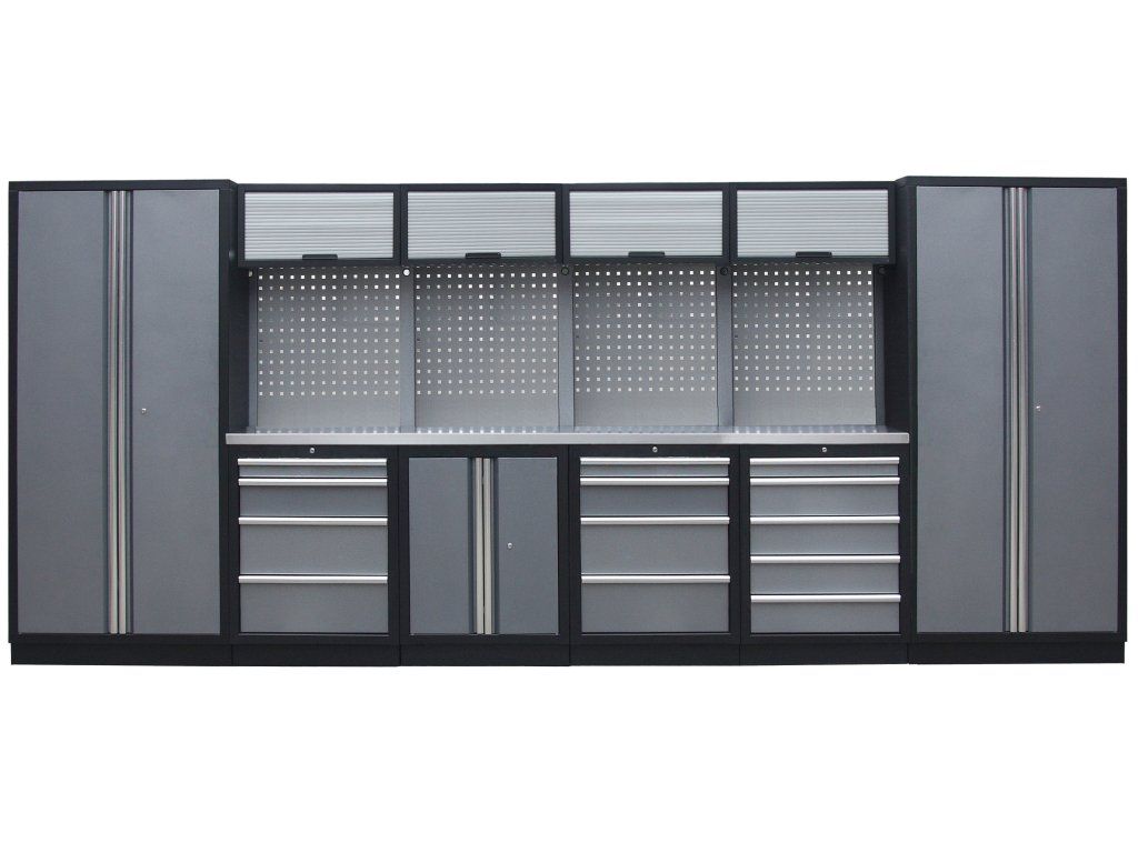 Sestava nábytku v sobě skrývá dostatečné množství úložného prostoru pro vaše nářadí, autotechniku i dílenské vybavení. V kombinaci s bytelnou pracovní deskou získáte multifunkční stěnu, se kterou vám půjde práce od ruky ve všech směrech.