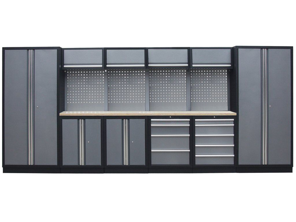 Sestava nábytku v sobě skrývá dostatečné množství úložného prostoru pro vaše nářadí, autotechniku i dílenské vybavení. V kombinaci s bytelnou pracovní deskou získáte multifunkční stěnu, se kterou vám půjde práce od ruky ve všech směrech.