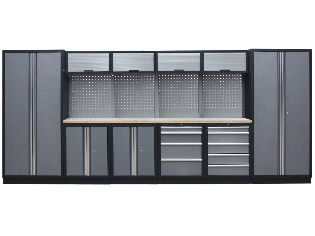 Sestava nábytku v sobě skrývá dostatečné množství úložného prostoru pro vaše nářadí, autotechniku i dílenské vybavení. V kombinaci s bytelnou pracovní deskou získáte multifunkční stěnu, se kterou vám půjde práce od ruky ve všech směrech.
