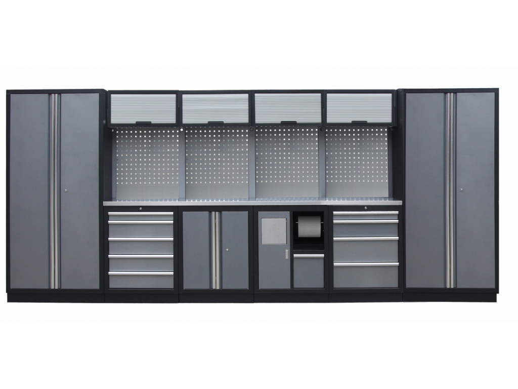 Dílenský nábytek PROFI GREY je plně modulární. Každá skříňka je navržena s ohledem na maximální flexibilitu. Jednotlivé komponenty zaměníte a umístíte podle vašich potřeb. Bez problému tak přidáte další skříňky na jakoukoliv pozici nebo sestavu můžete rozšířit o regály, ponk, dílenské vozíky s nářadím i prázdné nebo multifunkční skříňky.