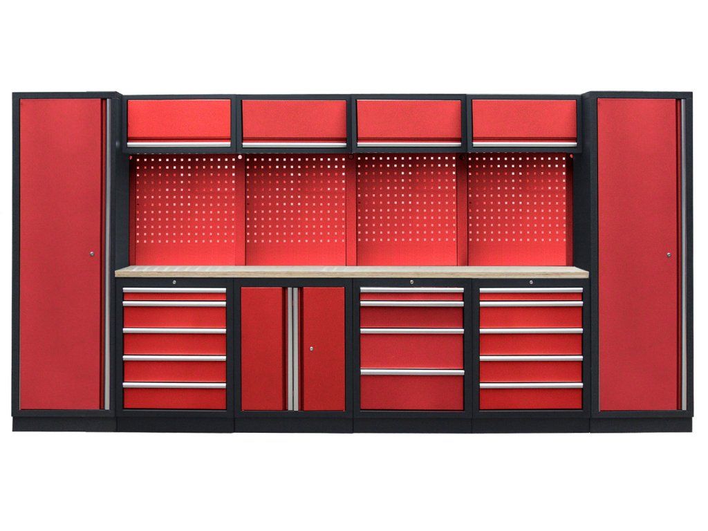 Sestava nábytku v sobě skrývá dostatečné množství úložného prostoru pro vaše nářadí, autotechniku i dílenské vybavení. V kombinaci s bytelnou pracovní deskou získáte multifunkční stěnu, se kterou vám půjde práce od ruky ve všech směrech.