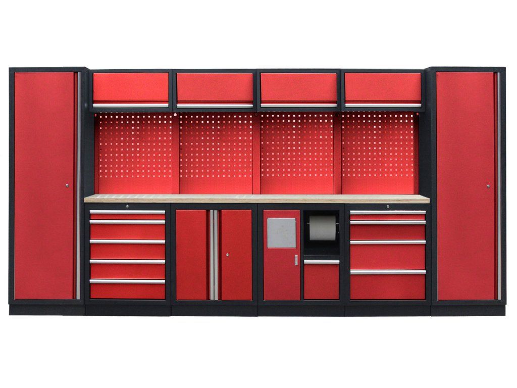 Sestava nábytku v sobě skrývá dostatečné množství úložného prostoru pro vaše nářadí, autotechniku i dílenské vybavení. V kombinaci s bytelnou pracovní deskou získáte multifunkční stěnu, se kterou vám půjde práce od ruky ve všech směrech.