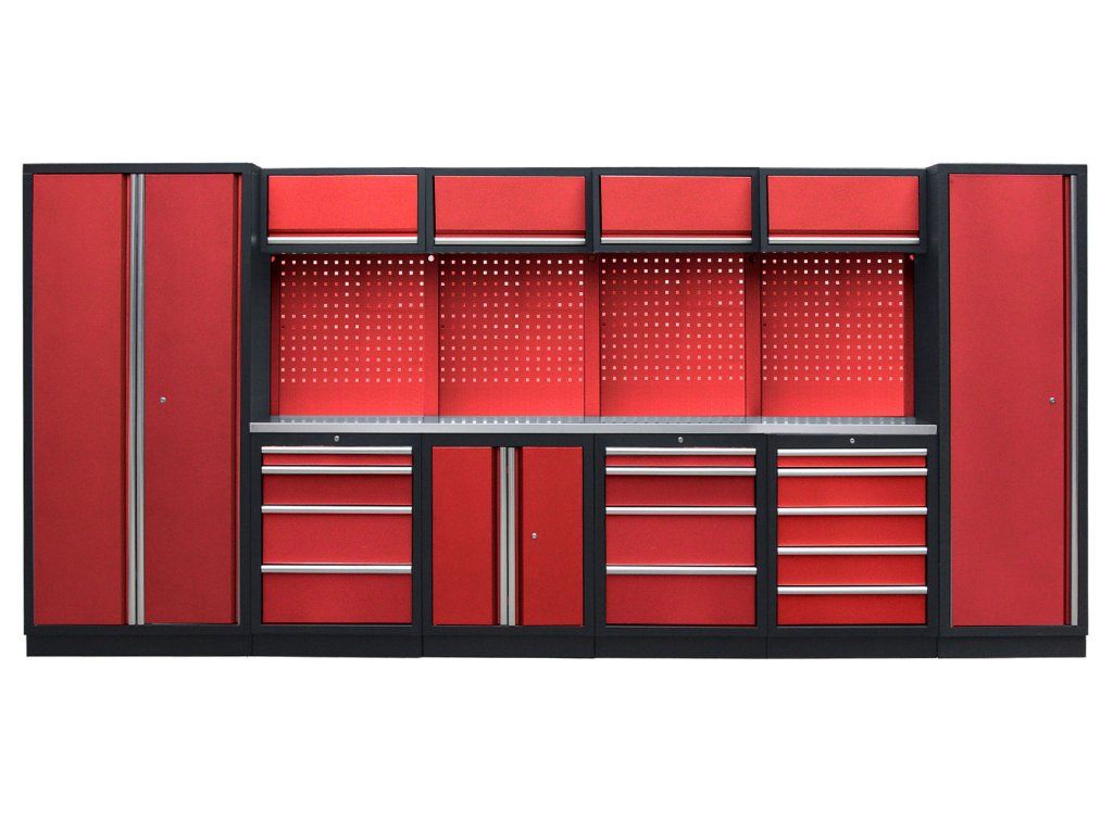 Sestava nábytku v sobě skrývá dostatečné množství úložného prostoru pro vaše nářadí, autotechniku i dílenské vybavení. V kombinaci s bytelnou pracovní deskou získáte multifunkční stěnu, se kterou vám půjde práce od ruky ve všech směrech.