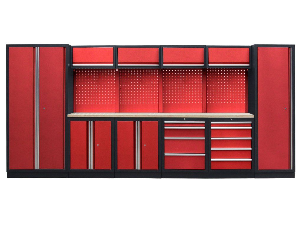 Sestava nábytku v sobě skrývá dostatečné množství úložného prostoru pro vaše nářadí, autotechniku i dílenské vybavení. V kombinaci s bytelnou pracovní deskou získáte multifunkční stěnu, se kterou vám půjde práce od ruky ve všech směrech.