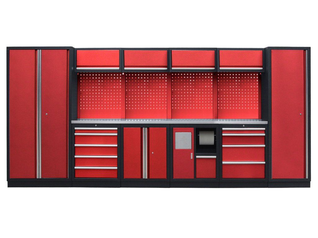 Dílenský nábytek PROFI RED je plně modulární. Každá skříňka je navržena s ohledem na maximální flexibilitu. Jednotlivé komponenty zaměníte a umístíte podle vašich potřeb. Bez problému tak přidáte další skříňky na jakoukoliv pozici nebo sestavu můžete rozšířit o regály, ponk, dílenské vozíky s nářadím i prázdné nebo multifunkční skříňky.