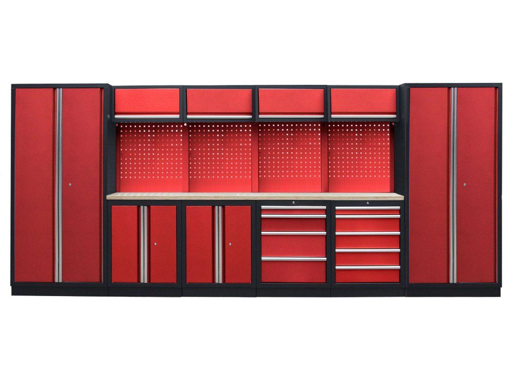 Sestava nábytku v sobě skrývá dostatečné množství úložného prostoru pro vaše nářadí, autotechniku i dílenské vybavení. V kombinaci s bytelnou pracovní deskou získáte multifunkční stěnu, se kterou vám půjde práce od ruky ve všech směrech.