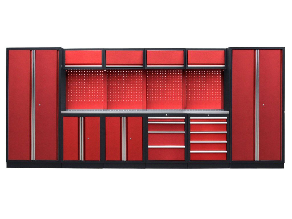 Sestava nábytku v sobě skrývá dostatečné množství úložného prostoru pro vaše nářadí, autotechniku i dílenské vybavení. V kombinaci s bytelnou pracovní deskou získáte multifunkční stěnu, se kterou vám půjde práce od ruky ve všech směrech.