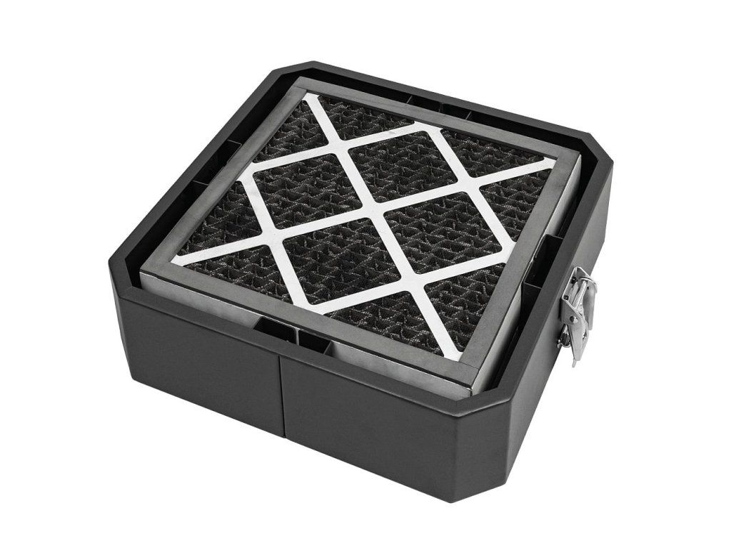 Uhlíkový filtr M9000 v modulárním boxu pro filtr vzduchu MFlux 5. Uhlíkové filtry efektivně eliminují pachy a zplodiny. Díky modulární konstrukci filtru MFlux 5 můžete tento box vybavený dvěma uhlíkovými filtry jednoduše nasadit na váš MFlux 5.