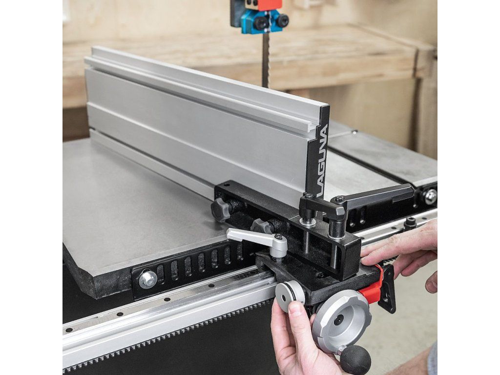 Podélné pravítko LAGUNA DriftMaster pro pásové pily 14“ až 18“ s mikro a rychloposuvem. Alu profil lze překlopit a nastavit do stran v rozmezí 10°. Pravítko se pohybuje na lineárním ozubeném převodu a je vybavené nastavitelnou stupnicí a dorazem.