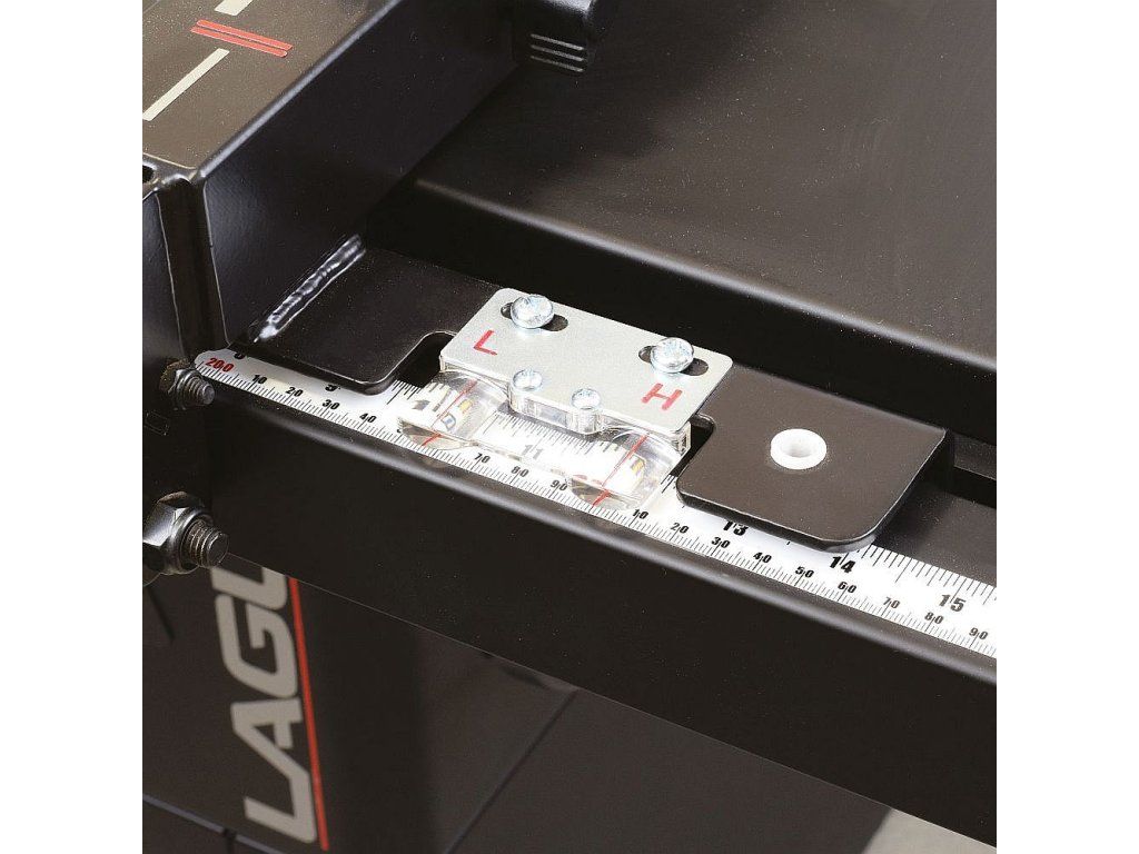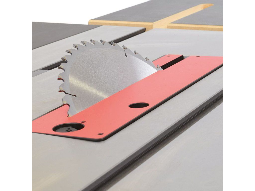 Na první pohled pila zaujme velkým pracovním stolem, který je z větší části z litiny s bočními stoly ze silnostěnného ocelového plechu s kvalitní povrchovou úpravou odolnou proti otěru. Pila je dodávána se zadním prodloužením stolu o dalších 500 mm, které oceníte při řezání delších dílců. Součástí pily je masivní podélné pravítko s rukojetí z měkčeného plastu, které lze velmi lehce posouvat a zamknout ve zvolené pozici. Hliníkový profil podélného pravítka lze překlopit o 90 stupňů pro snazší řezání tenkých dílců. Díky lupě na podélném pravítku je stupnice na vodicím profilu vždy snadno čitelná a umožní vám dokonale přesnou práci v horizontální i vertikální poloze hliníkového profilu. V hlavní litinové části stolu využijete dvě praktické T-drážky pro použití úhlového pravítka z obou stran pilového kotouče.