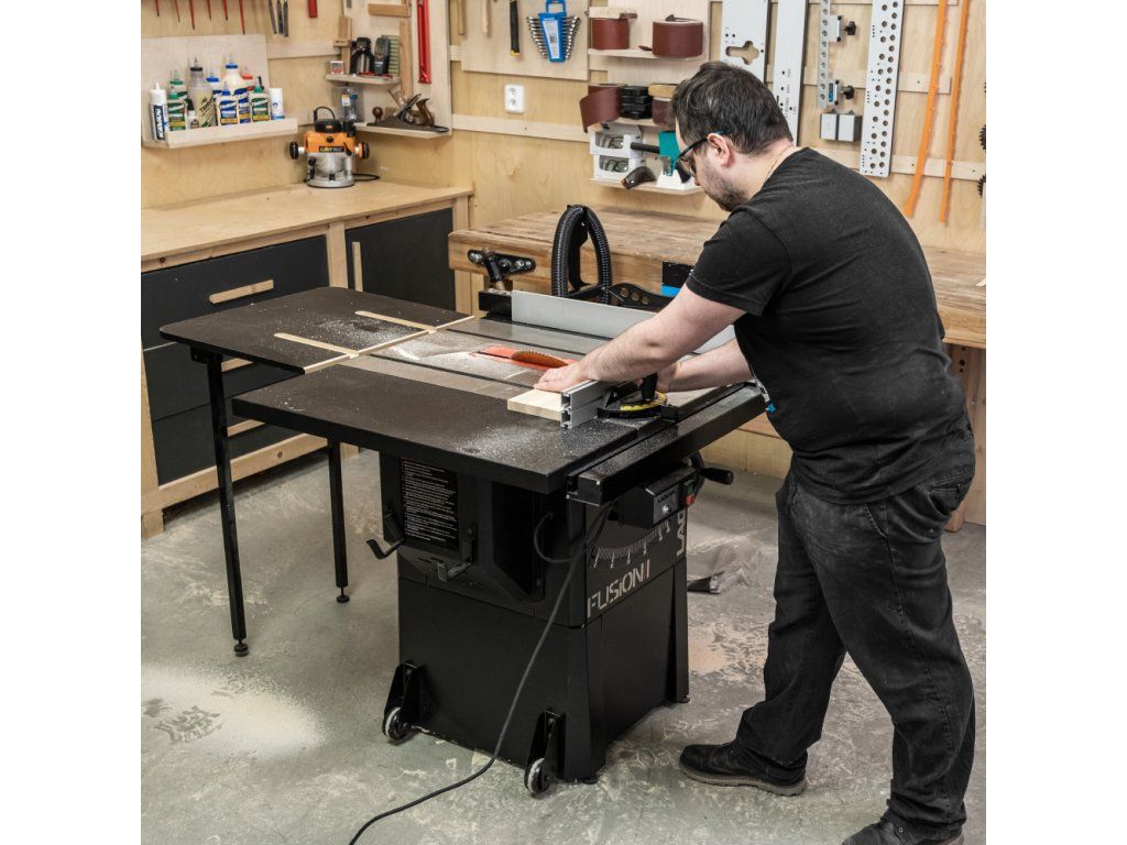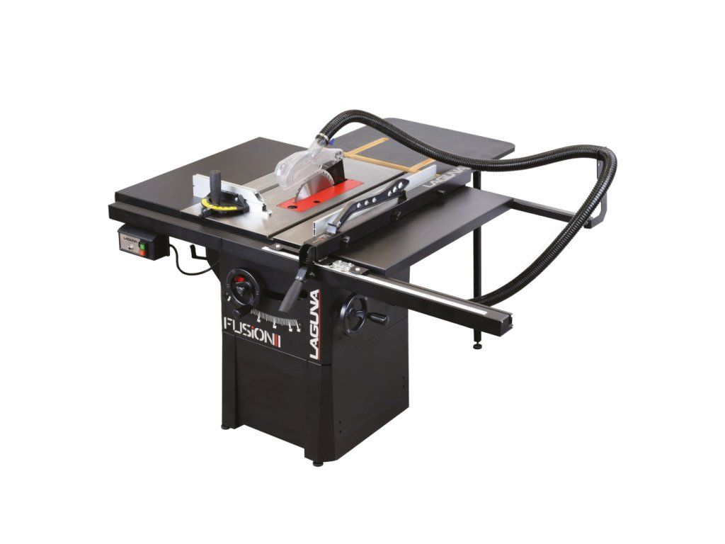 Kompaktní kotoučová pila na dřevo LAGUNA Fusion1 pro kutily i řemeslníky, přídavný zadní stůl, plynulá regulace výšky i sklonu řezu pro přesnou práci.