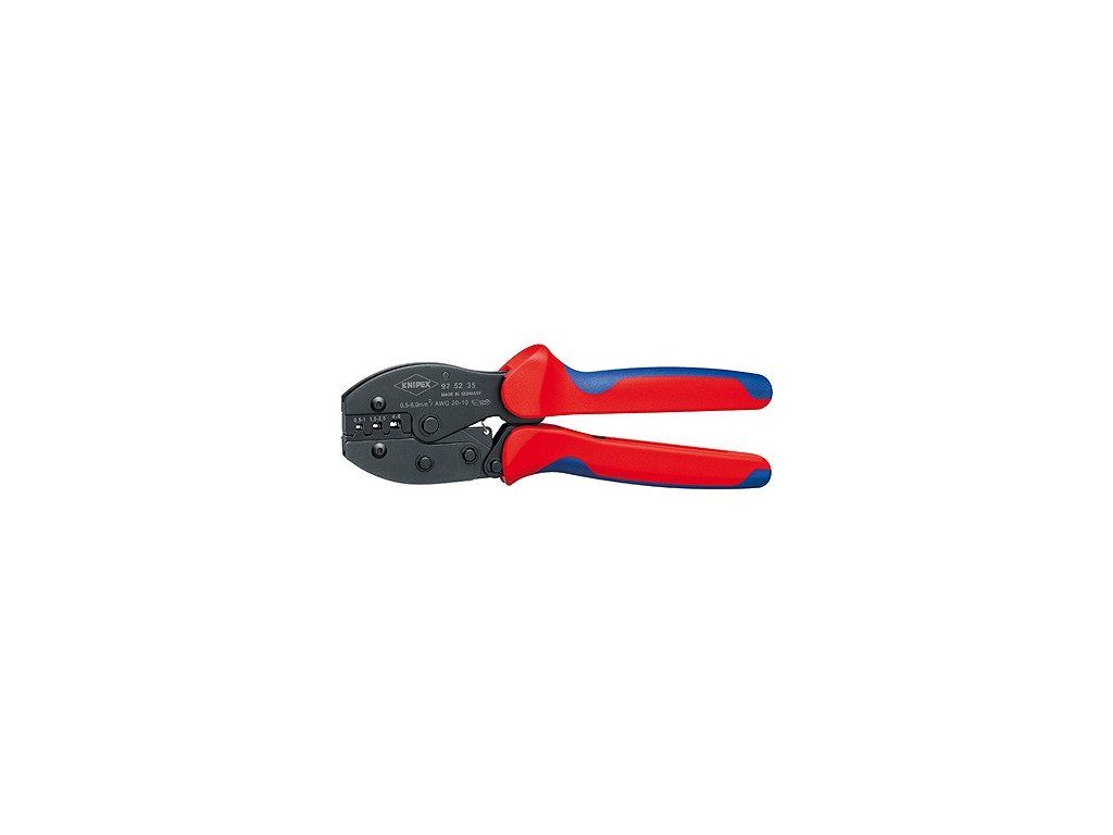 97 52 35 KNIPEX PreciForce® Lisovací kleště Pro neletované elektrické spoje Konstantně vysoká kvalita lisování díky precizním profilům a nuceným blokováním (možné odblokovat) Lisovací tlak je přesně nastaven ve výrobním závodě (kalibrován) Velké zesílení díky pákovému převodu pro práci s menší únavou Dobrá manipulace díky příznivé poloze rukojetí, nízké hmotnosti, krátké konstrukci a ergonomicky tvarovaným rukojetím chromvanadová elektroocel ve zvláštní jakosti, kalená v oleji Hlava: Brunýrovaná Rukojeť: S dvoubarevnými vícesložkovými návleky rukojetí Použití: neizolované otevřené konektory (4,8 + 6,3 mm šířky zástrček) Kapacita: 0,5 - 6,0 mm2 AWG 20 - 10 Počet hnízd: 3 Ks Délka: 220 mm Hmotnost: 494 g Nové lisovací kleště nabízí i přes kompaktní rozměry a velmi dobrou manipulovatelnost překvapivě vysoký převodový poměr – obzvláště výhodné pro větší lisovací průřezy. Příslušenství 97 49 95 Pomoc při uvedení do polohy pro 97 49 05 Podrobnější informace ke zboží naleznete v katalogu KNIPEX v sekci "Katalogy"Doplňkové parametry