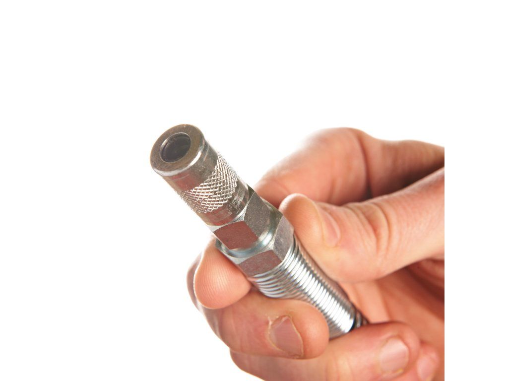 | Standardní vybavení: | 14,4mm flexibilní hadice s pružinovým chráničem, přímá mazací spojka, úhlová mazací spojka a popruh |