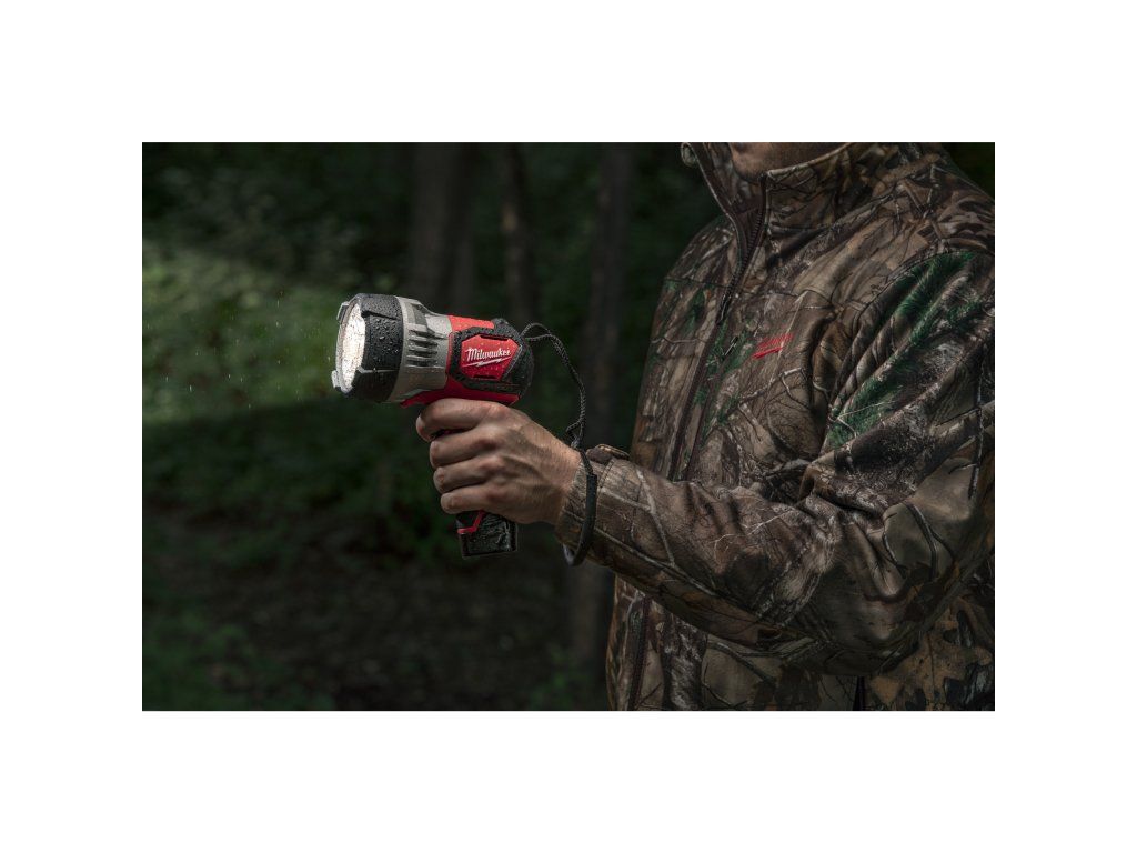- Reflektor MILWAUKEE® – produkuje úzký hlavní světelný svazek se širokým postranním svazkem