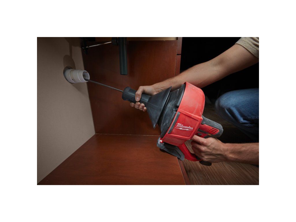 - Nářadí obsahuje pevnou spirálu 8 mm pro silné ucpání potrubí až do 50 mm. Lze jej také použít se všemi standardními spirálami ⌀ 6 a 8 mm od společnosti MILWAUKEE® a dalších výrobců