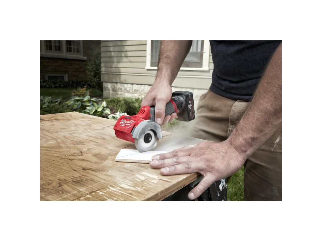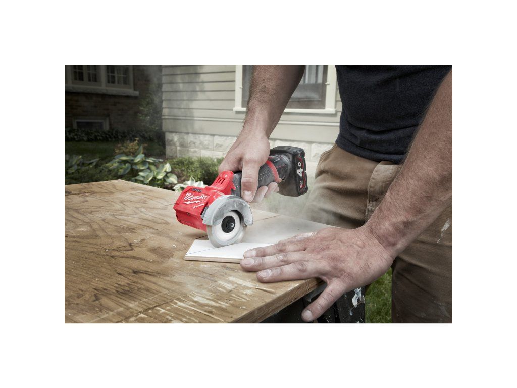 - Všestranné možnosti řezání a výběr kvalitních kotoučů (rozbrušovací kotouč na kovy, karbidový univerzální kotouč a kotouč na porcelánové obklady)