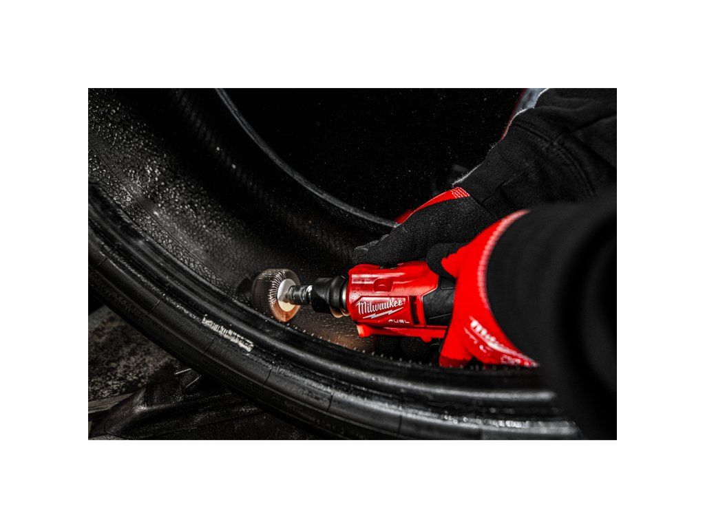 - Nízkootáčková bruska na hrubování pneumatik M12 FUEL™ disponuje dvěma režimy otáček pro vystružování (1 800 ot/min) a pro brusné aplikace (3 000 ot/min)