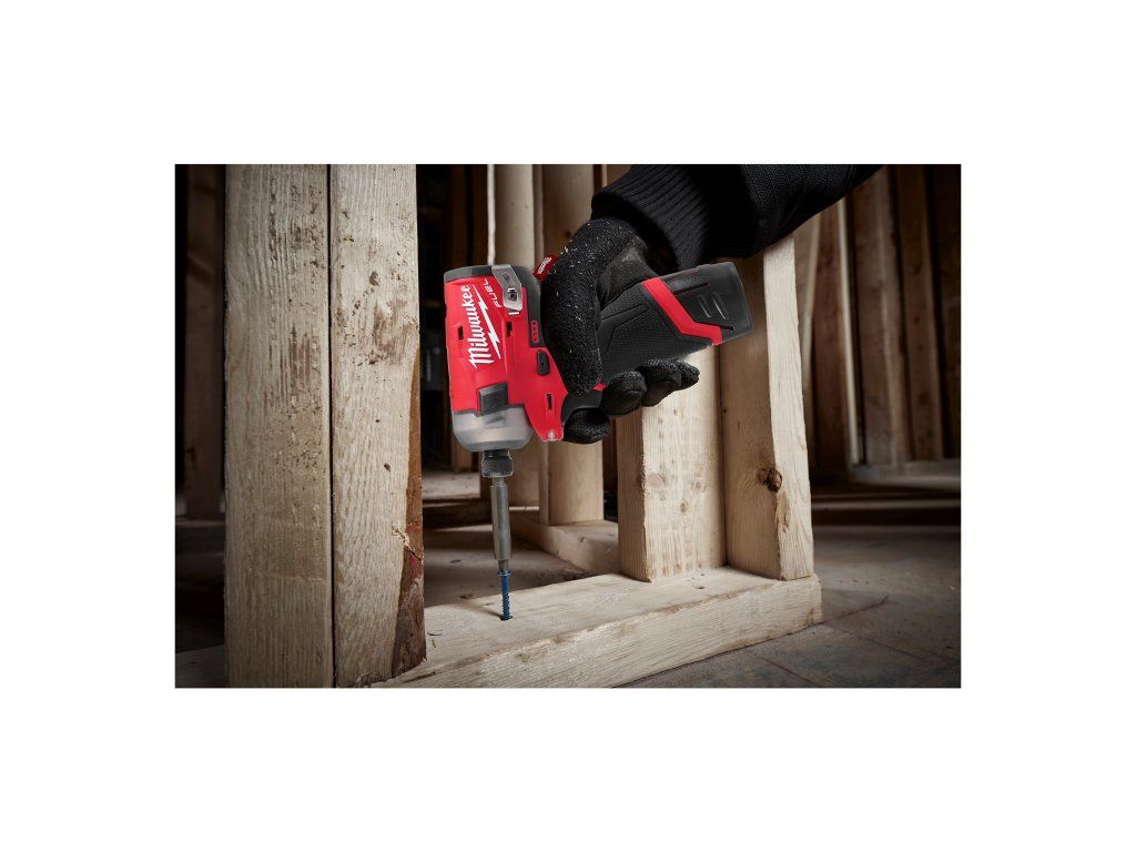 - M12 FUEL™ SURGE™ rázový utahovák ¼″ Hex je nejtišší 12V rázový utahovák na trhu, který při práci se dřevem generuje pouze 76 dB (A)