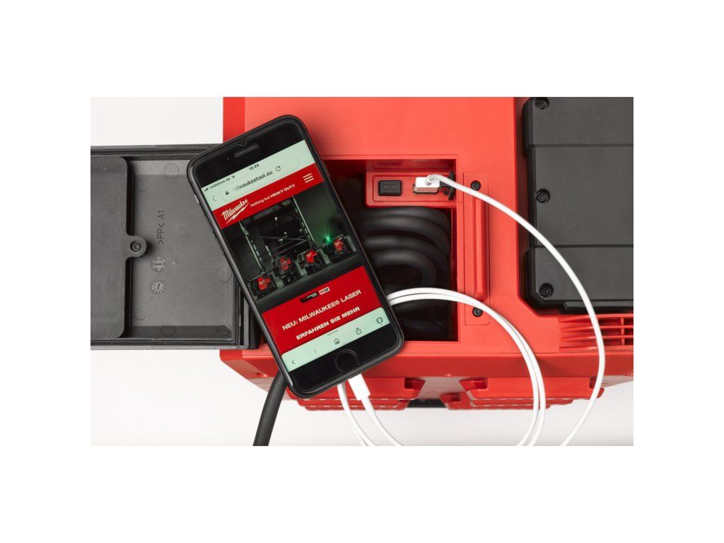 - Zabudovaná funkce nabíječky umožňuje rychlé a pohodlné nabíjení jakéhokoli akumulátoru M18™ nebo elektronického zařízení přes výstupní USB port 2,1 A