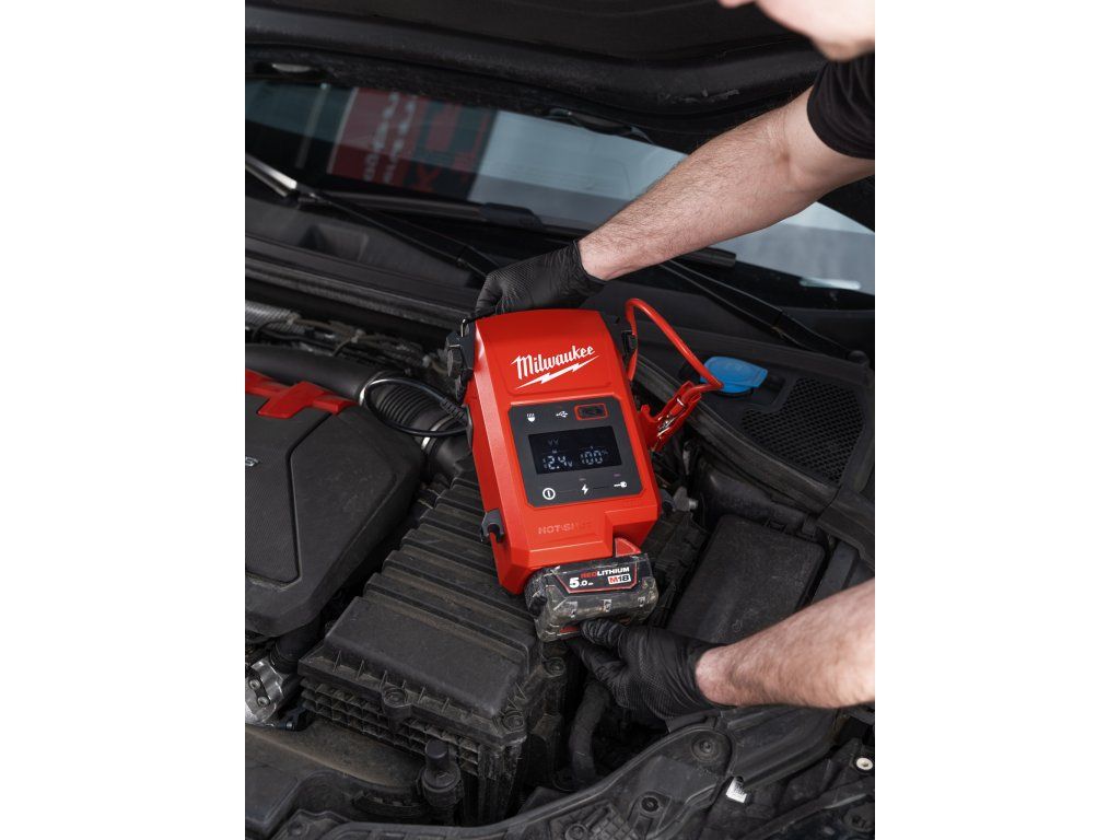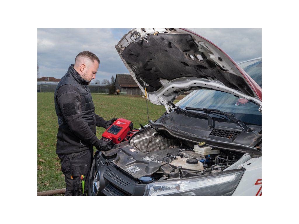 - M18™ startovací zdroj dodává až 2000 A špičkového proudu a zvládne nastartovat benzinové motory do 8,1 l a dieselové do 3,0 l