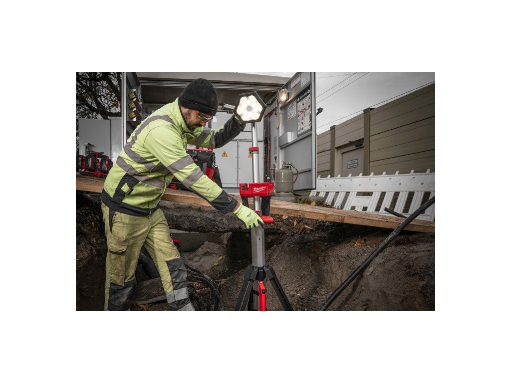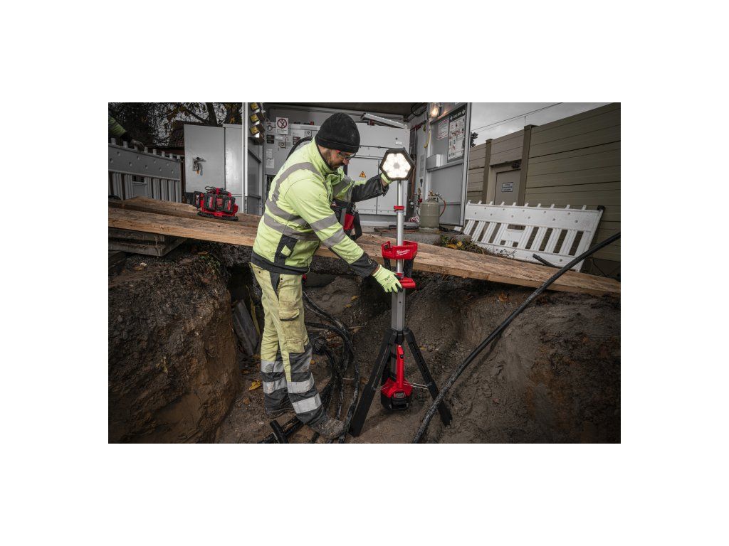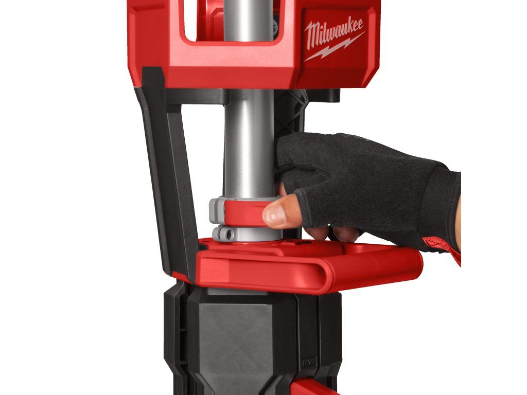 - Teleskopická tyč, která dosahuje výšky 1,10 m až více než 2,20 m, umožňuje osvětlení pracovního prostoru shora bez vzniku stínů