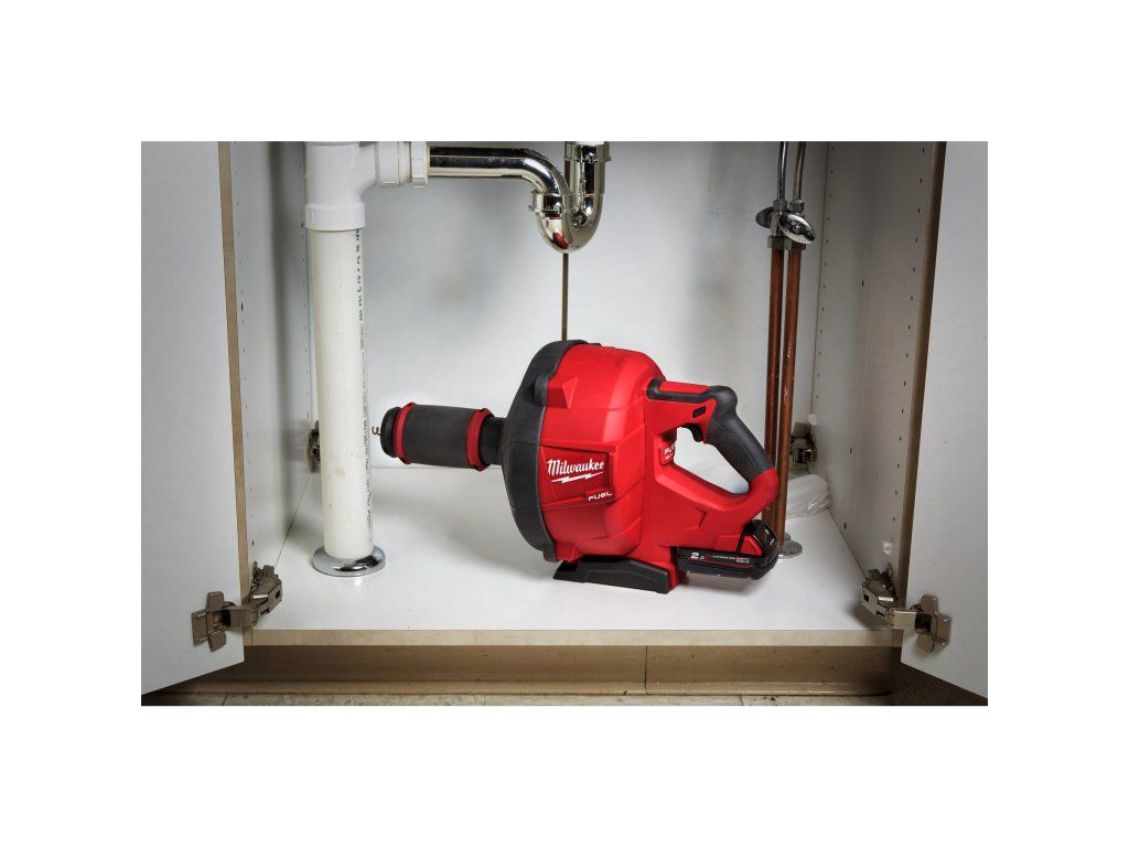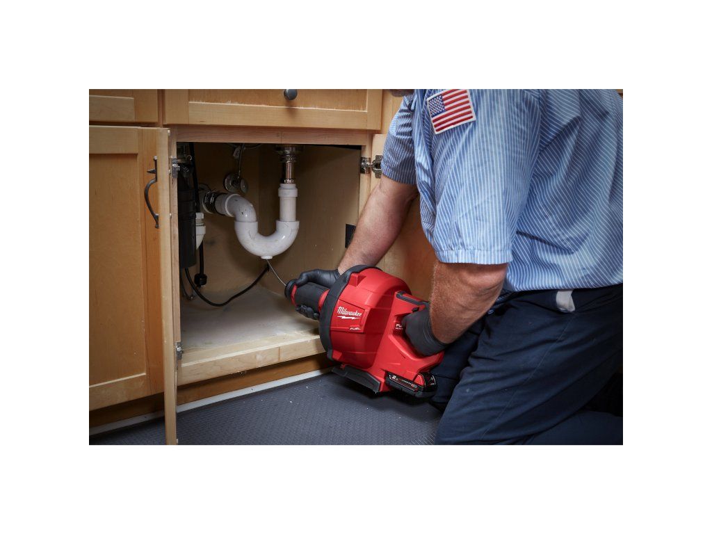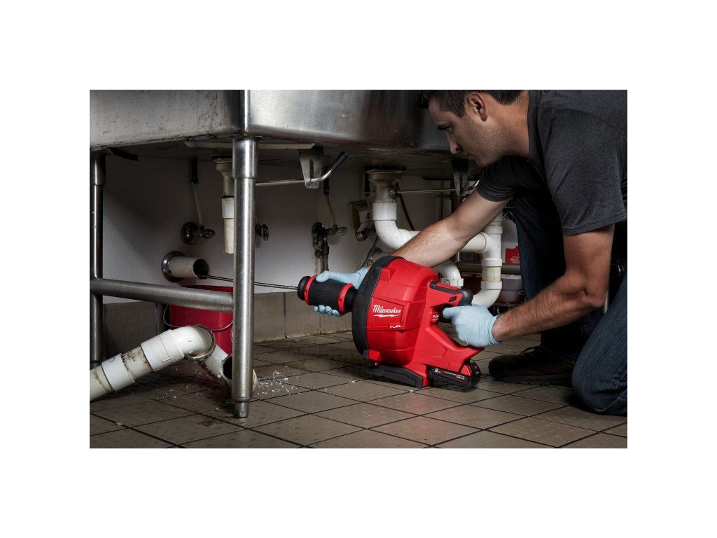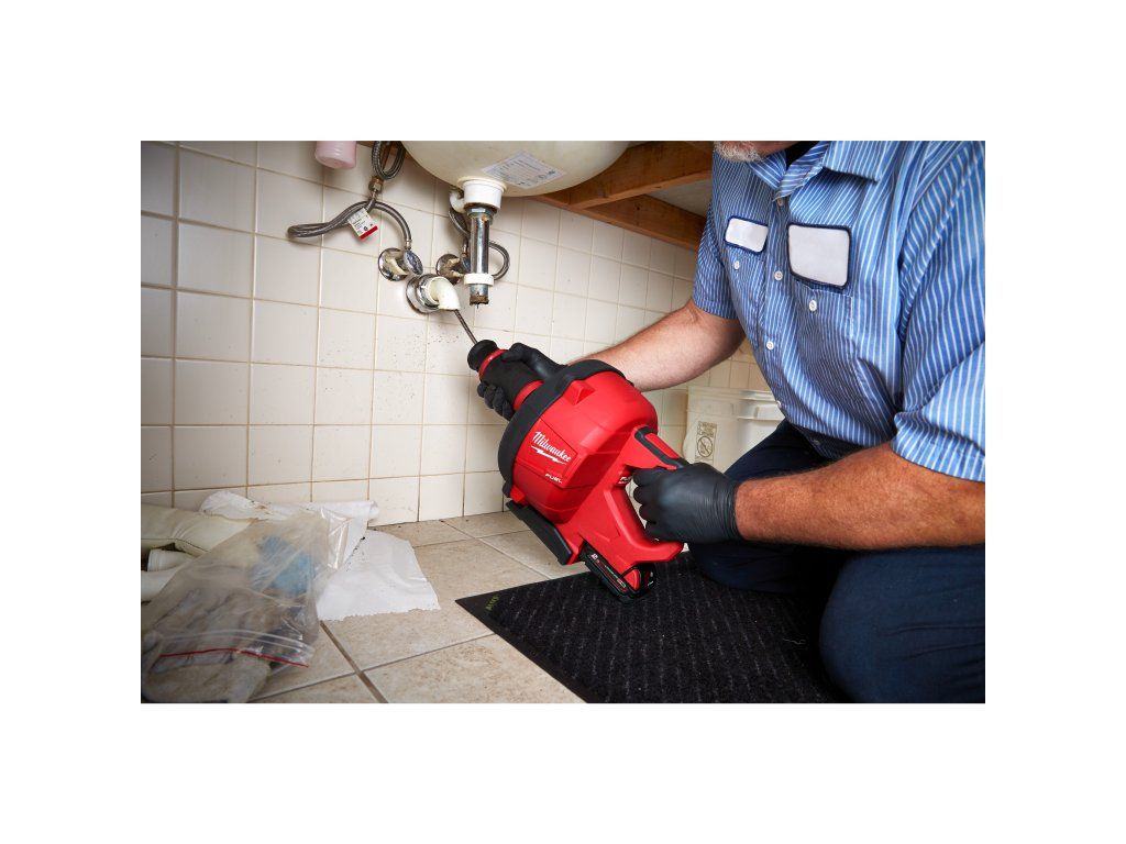 - Světově první ruční čistič potrubí s akumulátorem 18V a automatickým posuvem, který lze použít se spirálami 6 mm, 8 mm a 10 mm MILWAUKEE® a jiných značek, v potrubí od 32 mm do 75 mm, do délky 15 m, čímž se eliminuje veškerá nebezpečí úrazu elektrickým proudem, se kterými se uživatelé dnes setkávají