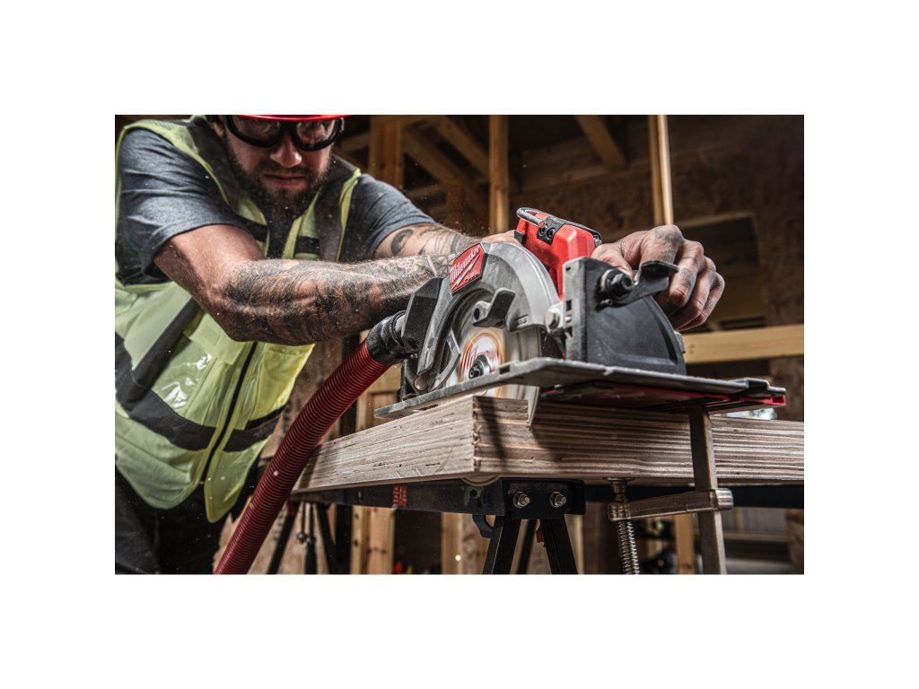 - Okružní pila M18 FUEL™ poskytuje výkon pro podélné řezání a umožňuje udržovat 6 000 otáček za minutu po celou dobu práce a díky technologii FORGE™ zabudované v této pile zajišťuje rychlejší řezání - na jedno nabití akumulátoru 12,0 Ah dokáže nařezat až 700 kusů borovicového hranolu o rozměrech 90 x 45 mm nebo 64 běžných metrů borovicového panelu o tloušťce 42 mm.