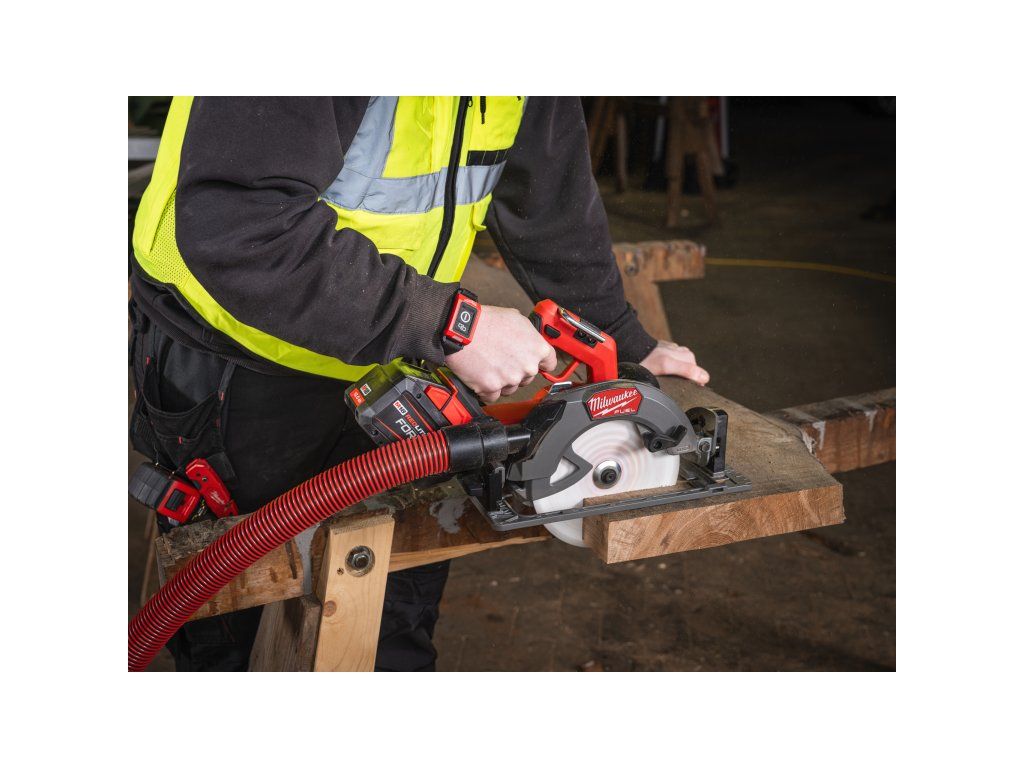 - Hořčíková patka kompatibilní s vodicími lištami MILWAUKEE®. To umožňuje uživateli provádět rovné a přesné řezy do desek a zároveň udržovat stejnou linii řezu pod jakýmkoli úhlem, což minimalizuje čas potřebný k seřízení.