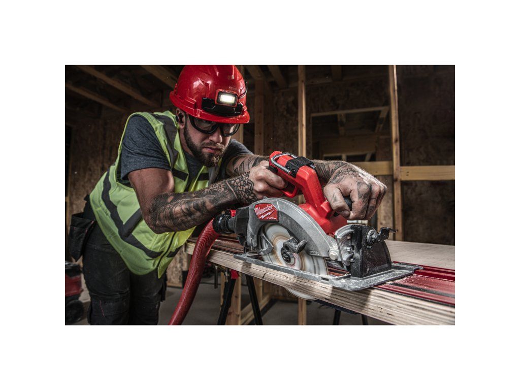 - Hořčíková patka kompatibilní s vodicími lištami MILWAUKEE®. To umožňuje uživateli provádět rovné a přesné řezy do desek a zároveň udržovat stejnou linii řezu pod jakýmkoli úhlem, což minimalizuje čas potřebný k seřízení.