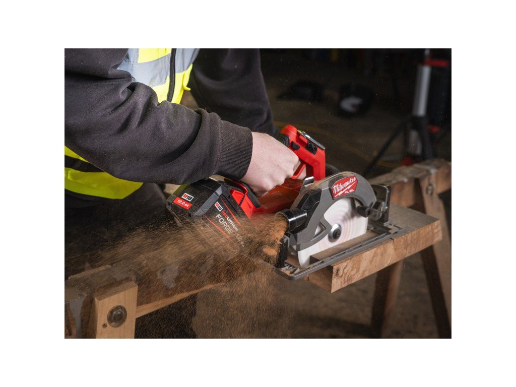 - Okružní pila M18 FUEL™ poskytuje výkon pro podélné řezání a umožňuje udržovat 6 000 otáček za minutu po celou dobu práce a díky technologii FORGE™ zabudované v této pile zajišťuje rychlejší řezání - na jedno nabití akumulátoru 12,0 Ah dokáže nařezat až 700 kusů borovicového hranolu o rozměrech 90 x 45 mm nebo 64 běžných metrů borovicového panelu o tloušťce 42 mm.