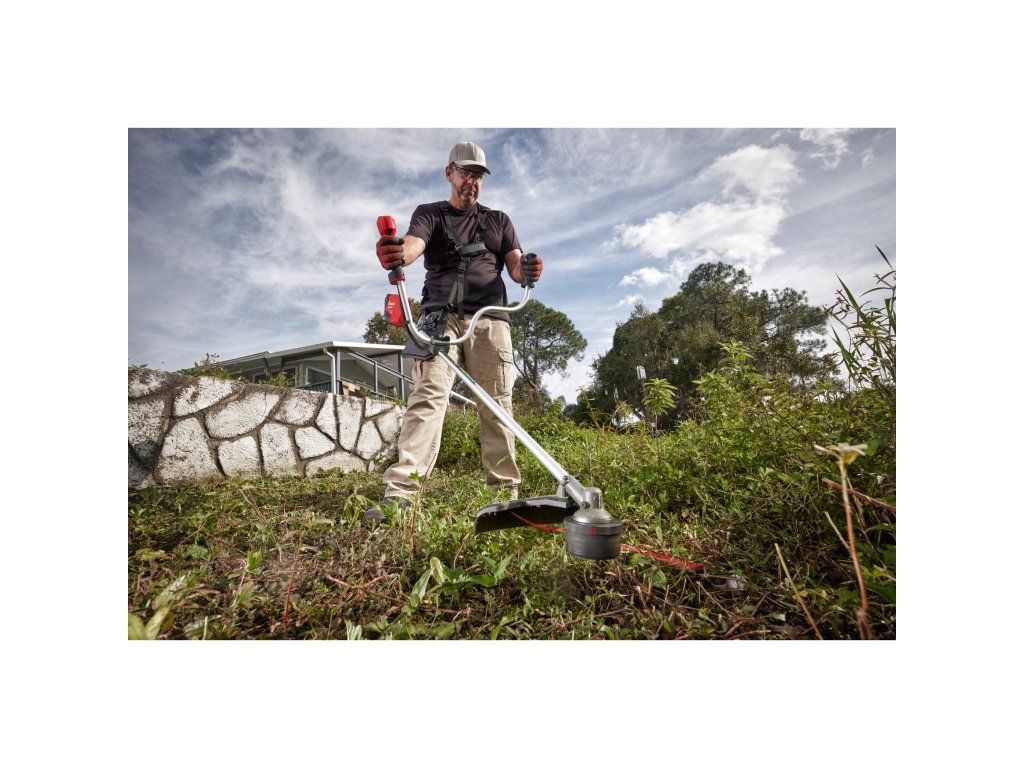 - Výkonný křovinořez určený k čištění trávy, plevele, hustých křovin a stromků do průměru 3 cm
