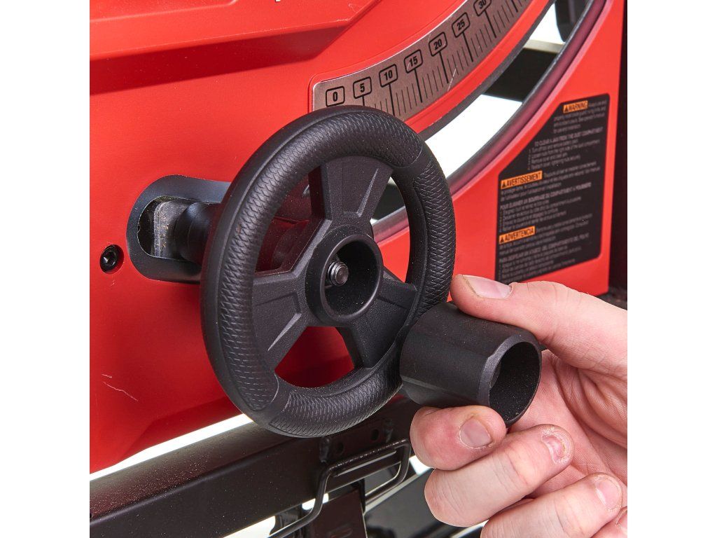 - Posuvný kryt s ozubnicí a pastorkem umožňuje přesné a snadné nastavení vodítka u přední části pily a poskytuje kapacitu podélného řezu 622 mm