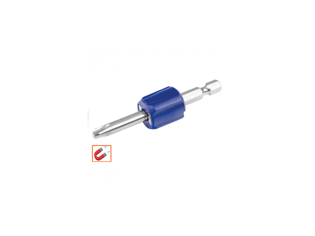 Jednoduchý a rychlý magnet na bity Vhodný pro ¼“ bity od délky 50 mm Jednoduché použití, pouze připojíte na bit Lze také použít s úhlovými klíči a šroubováky Balení obsahuje 2 ks