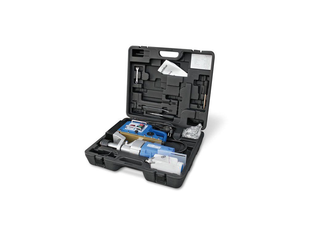 - Stroj je vybaven rychloupínacím systémem k rychlému upnutí korunkového vrtáku s weldonovou stopkou bez použití nástrojů