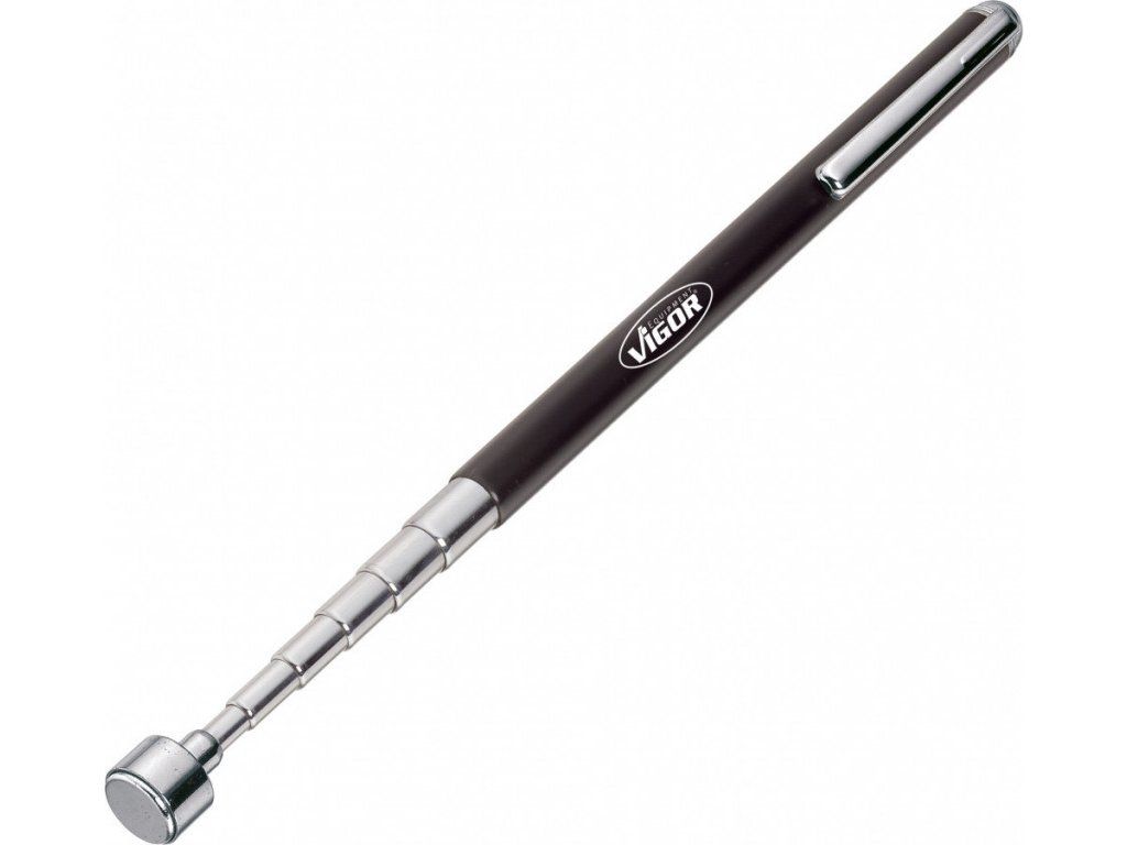 Magnetický teleskopický vytahovák (podavač) zapadlých součástek od německého výrobce VIGOR V1741 vysoké kvality (dceřiná firma HAZET/Německo) má výsuvnou tyčku v rozsahu 133 - 645 mm na konci s magnetem, který je schopen zachytit zapadlé součásti o hmotnosti až 1600 gramů.