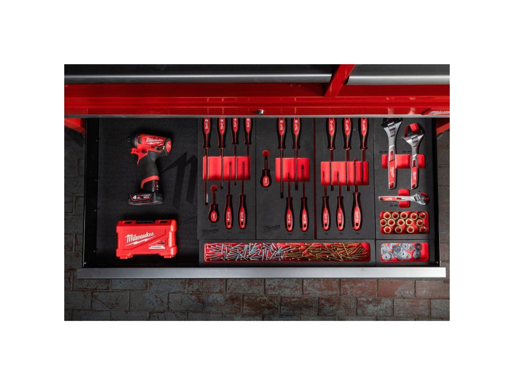 - Laserem řezaná pěna pro maximální využití prostoru v 46″/ 117 cm ocelovém skladovacím systému.