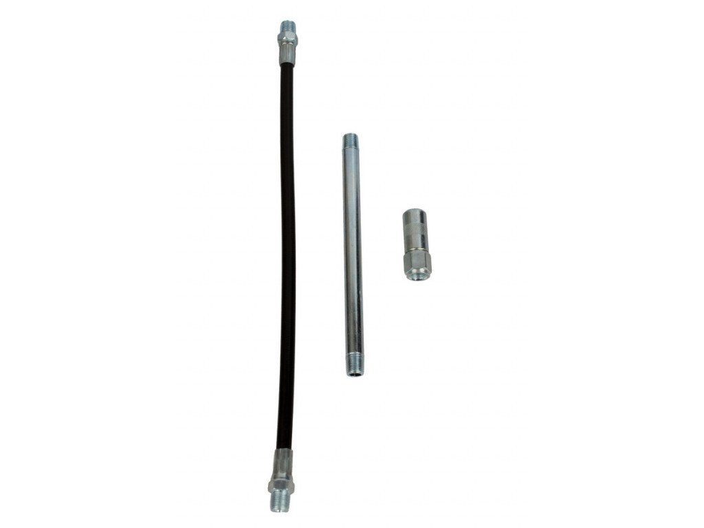 V balení naleznete hadicový nástavec o délce 300 mm, trubkový kovový nástavec o délce 180 mm a mazací sklíčidlovou spojku. Nástavce Vám značně usnadní práci, především při aplikaci maziva v hůře přístupných místech.
