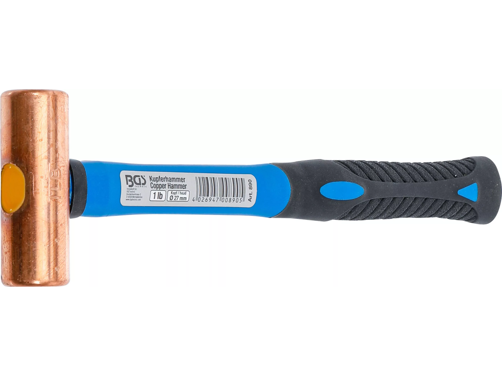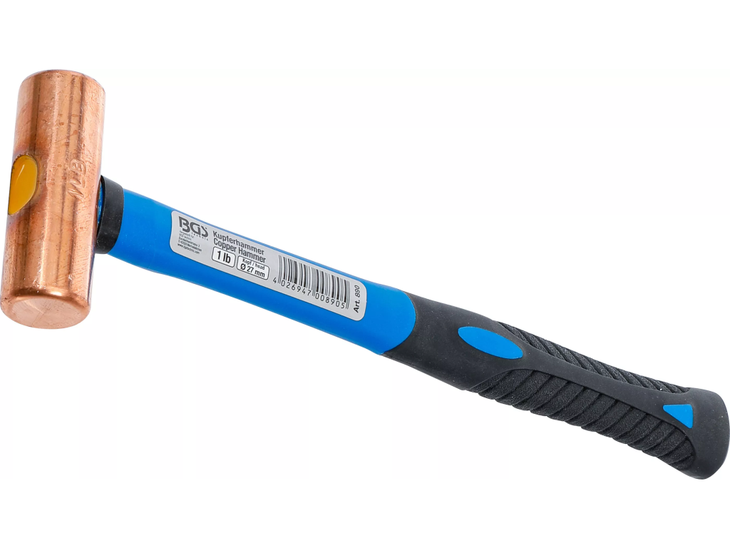 Měděná palička vhodná pro materiály, které jsou měkčí než hlava kladiva, např. pro rovnání hřídelí, různých obrobků nebo nástrojů.