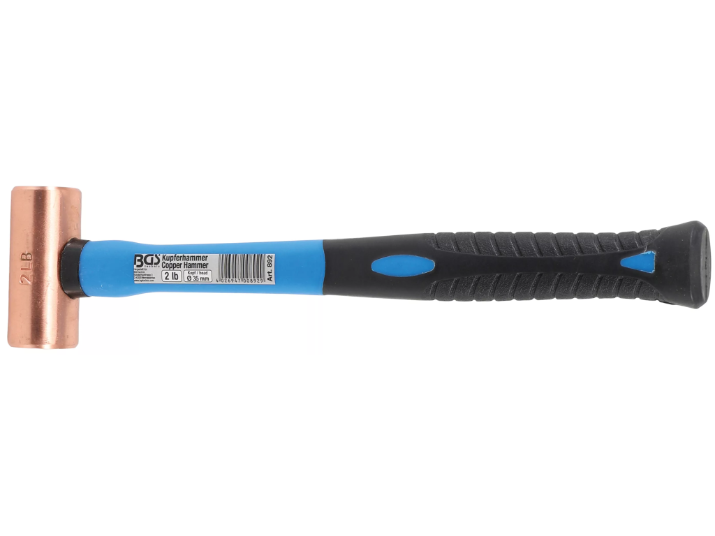 Měděná palička vhodná pro materiály, které jsou měkčí než hlava kladiva, např. pro rovnání hřídelí, různých obrobků nebo nástrojů.