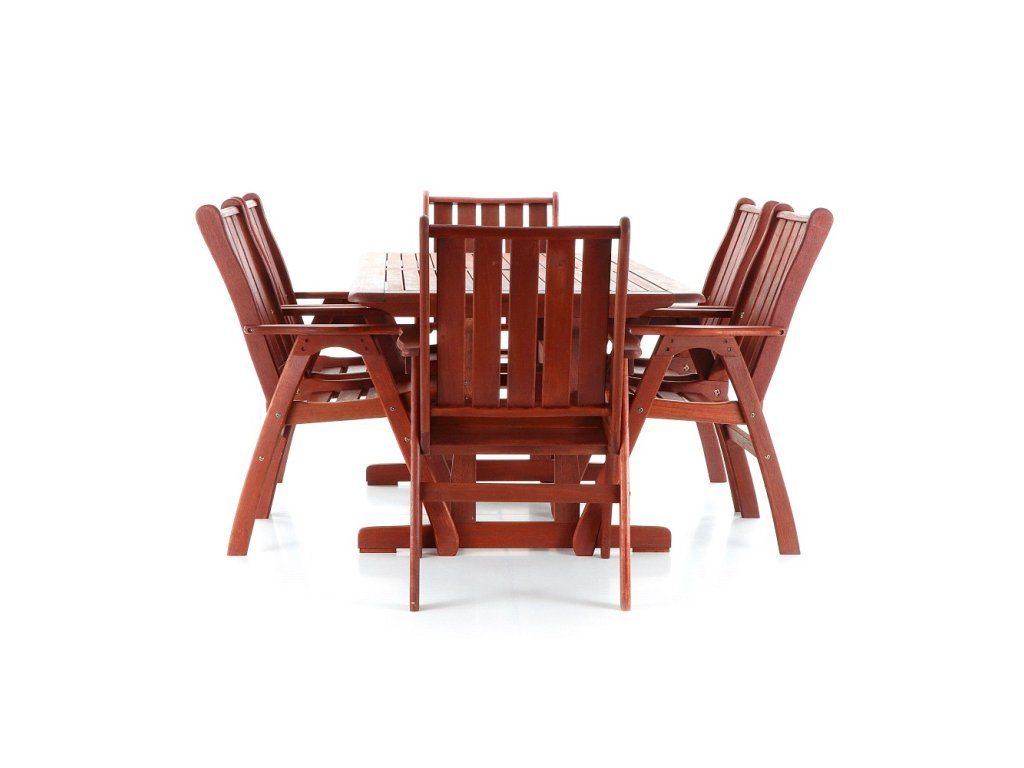 Luxusní masivní stolová sestava 6-ti křesel a stolu z exotického, velice trvanlivého a tvrdého dřeva meranti .